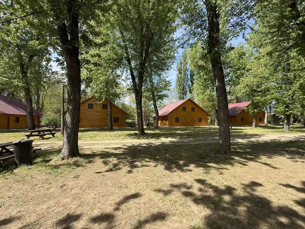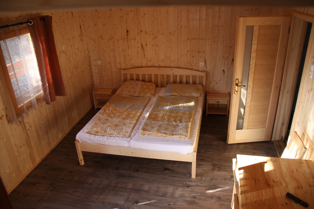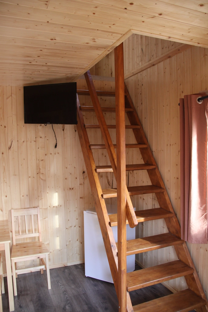 Our 4-person wood houses without comfort have 2 bunk beds or 1 bunk bed and 1 double bed. In the houses you can find a fridge.